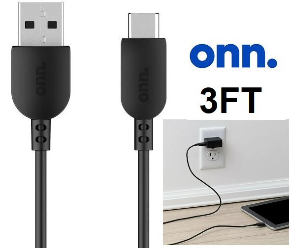 onn. Hi-Speed Certified USB-A to USB-C Cable, Transfer while Charging cords - 3ft - black
