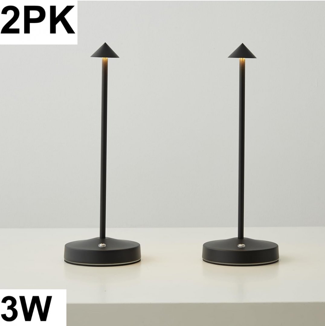 2pk rechargeable cordless table lamps - 5v - 2a - 3 watts - 2700k - black