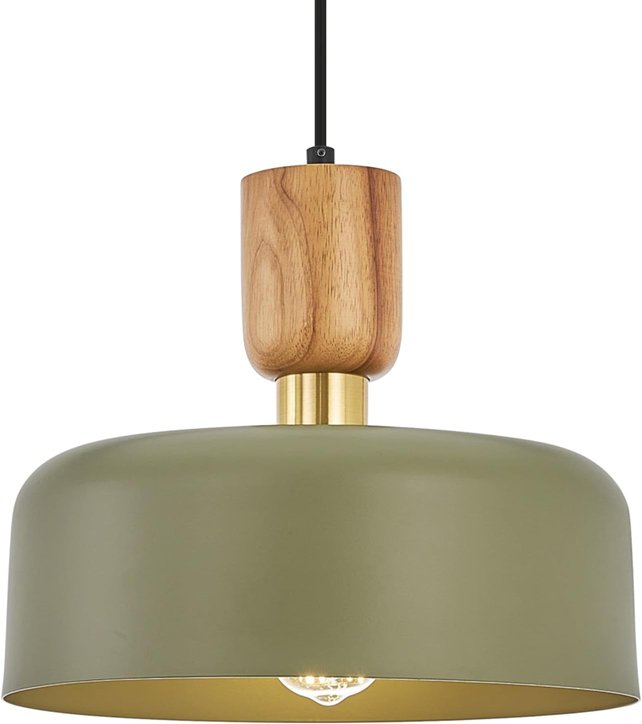 TeHenoo Contemporary Pendant Light Fixture - Natural Wood/Brass/Olive Green