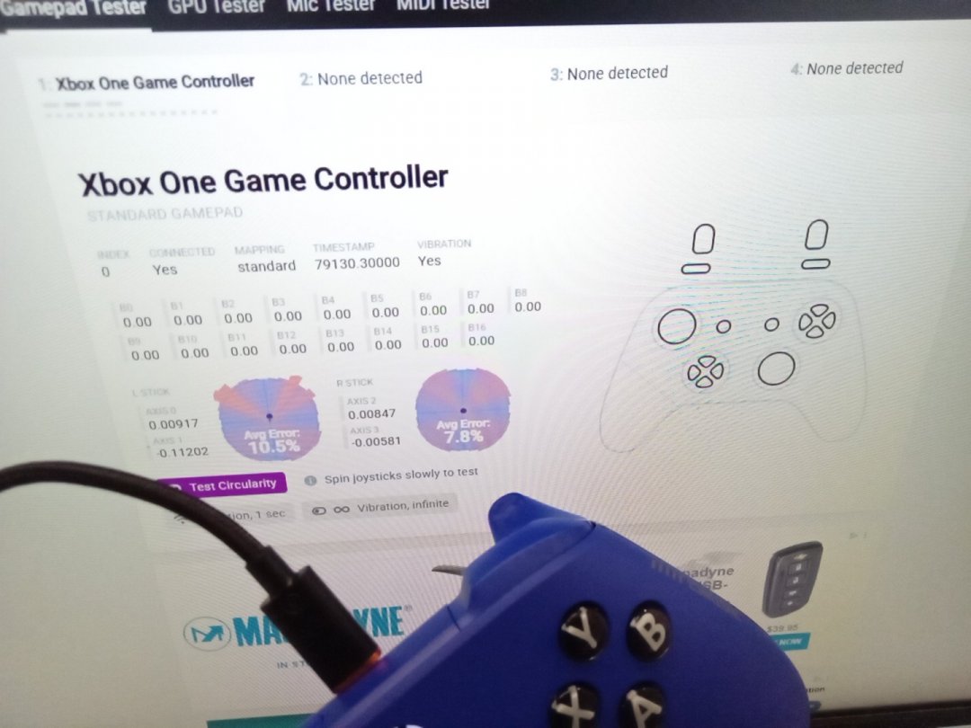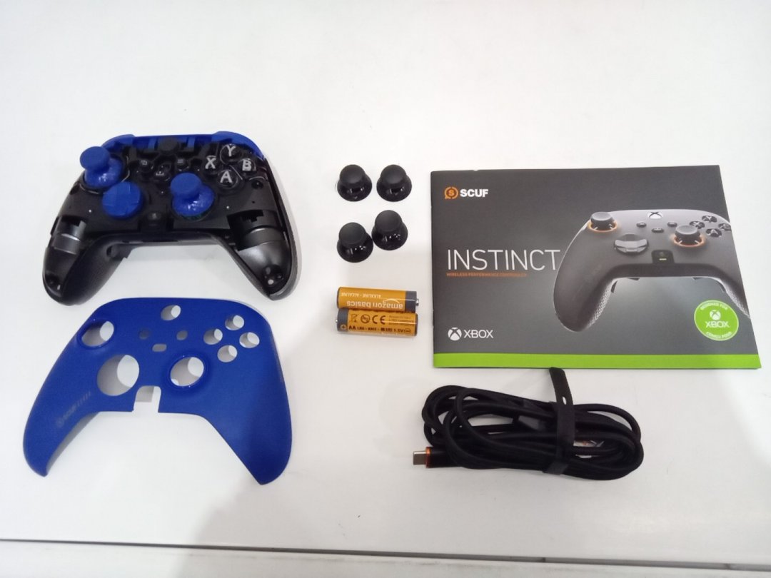 Signs of light wear on the front plate, triggers, and joysticks from prior use.