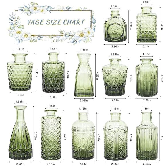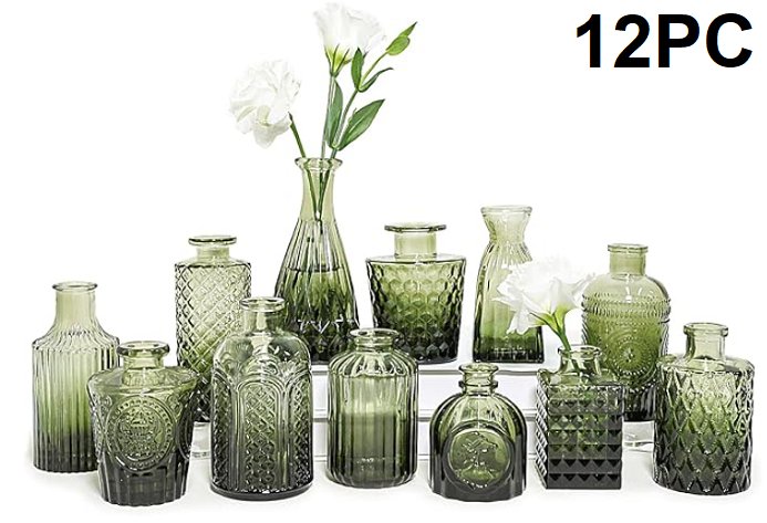 12PC SUPMIND Mini Vintage GLASS Vase FOR DECORATION - GREEN