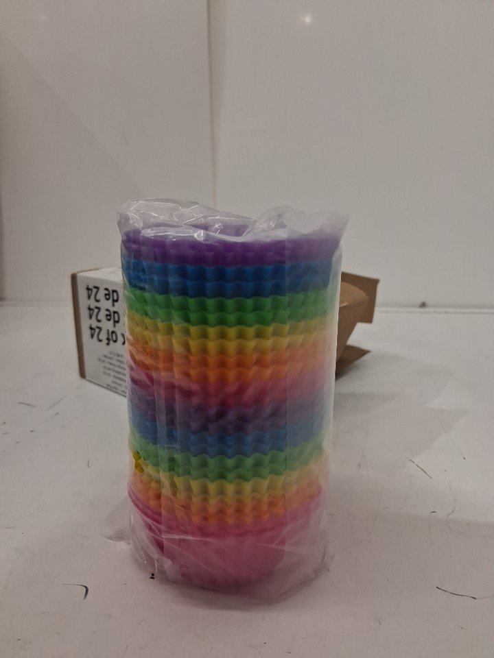 24PK AMAZONBASICS REUSABLE SILICONE mini MUFFIN/CUPCAKE BAKING CUPS - 2.5" - assorted colors