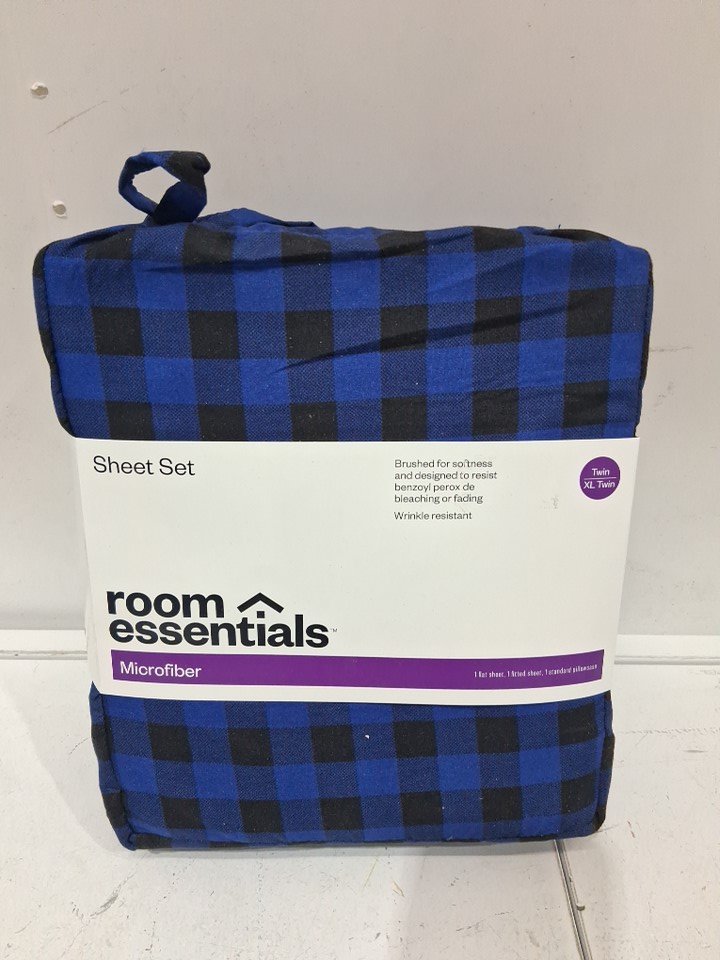3PC room essentials microfiber sheet set - TWIN/EXTRA LARGE TWIN - blue buffalo check