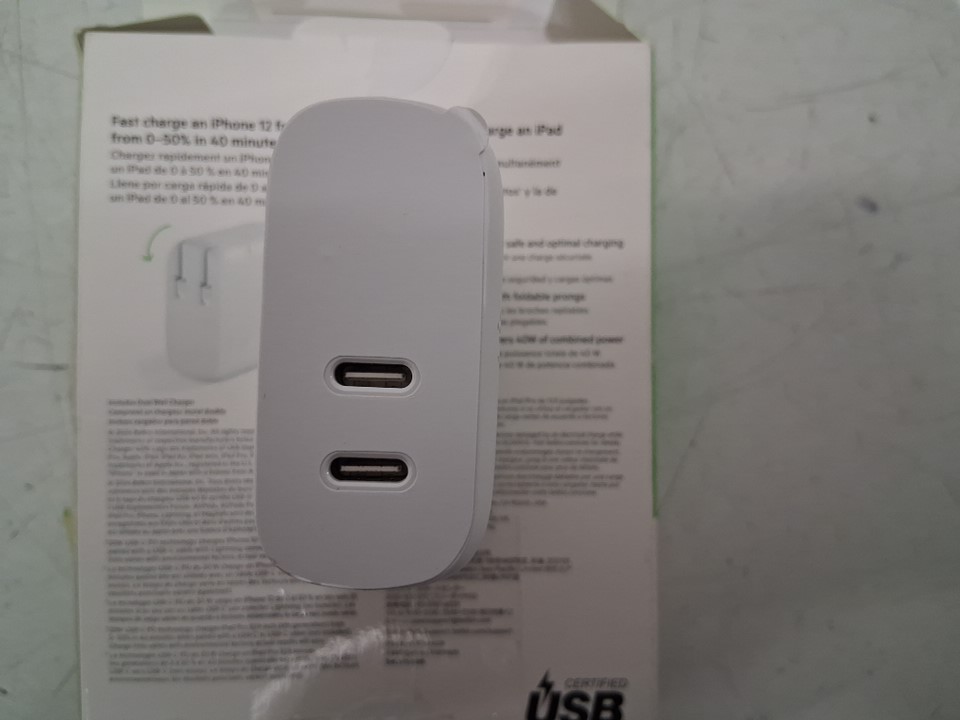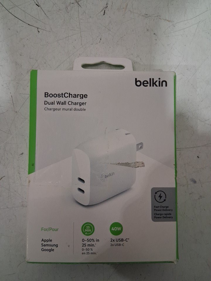 BELKIN BOOSTCHARGE 40w USB-C GAN WALL CHARGER WITH DUAL PORTS - FAST CHARGE SUPPORT - WHITE (MODEL: ‎WCb006dq)