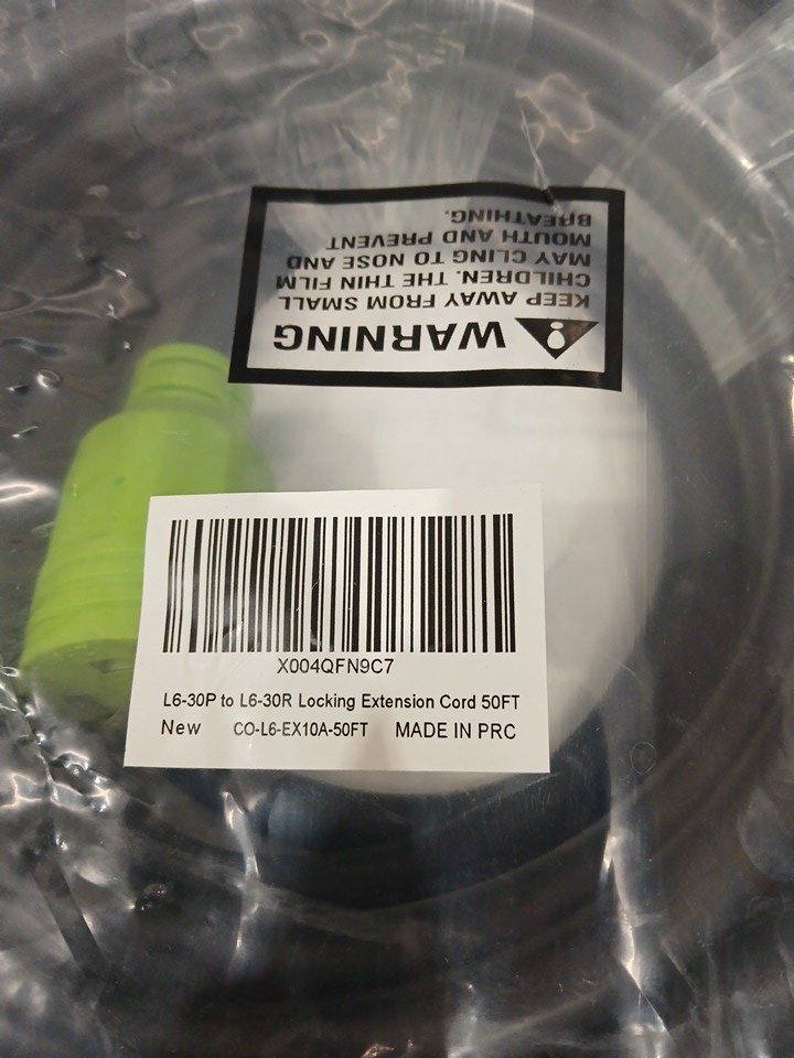 heavy duty Generator L6-30 Extension 3 prong locking plug/Cable cord - L6-30P to L6-30R - 30 Amp/50ft/10/3 gauge/250V/7500W/10AWG - black/green