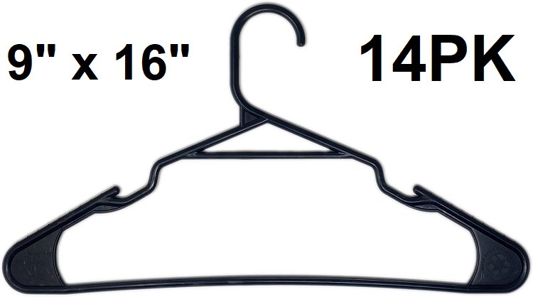 14PK UNBRANDED Eco-Friendly PLASTIC Clothing Hangers- 9" x 16"- max 3lbs- black