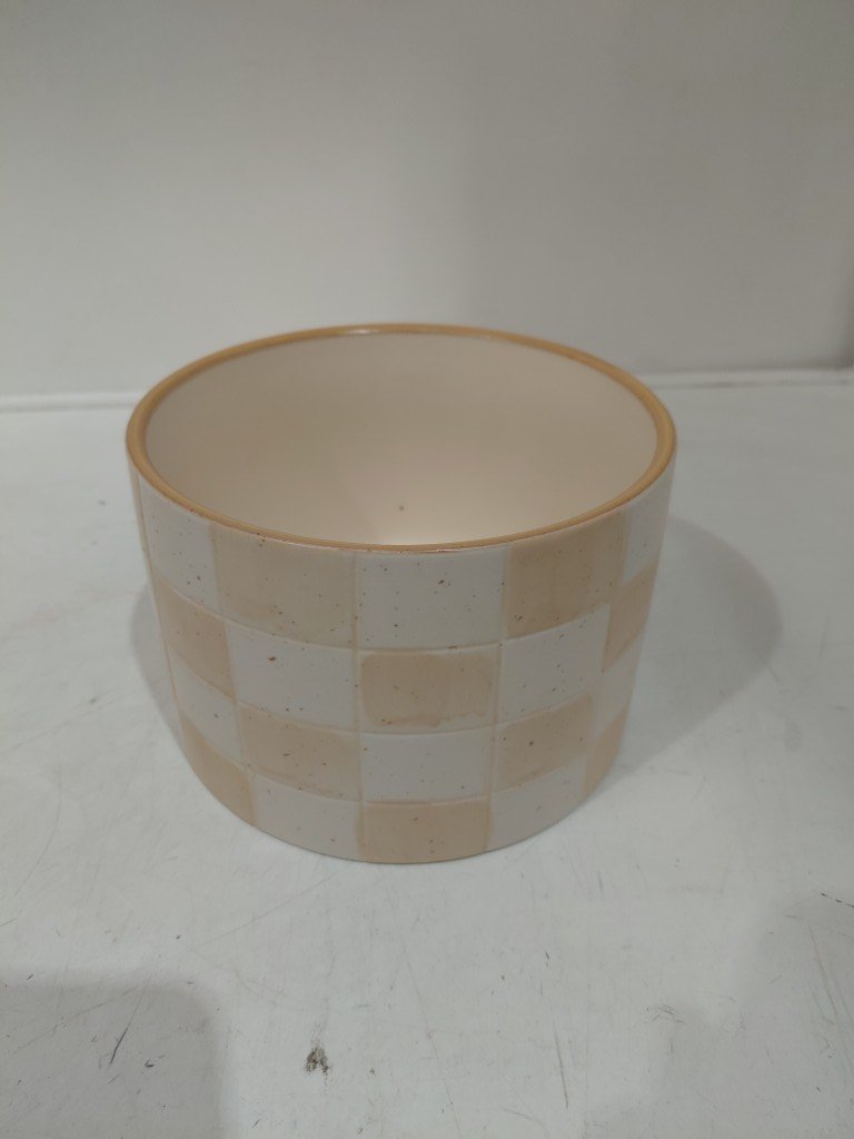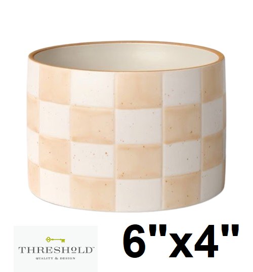 threshold ceramic stoneware flower pot - 6" x 4" - checkered beige/white
