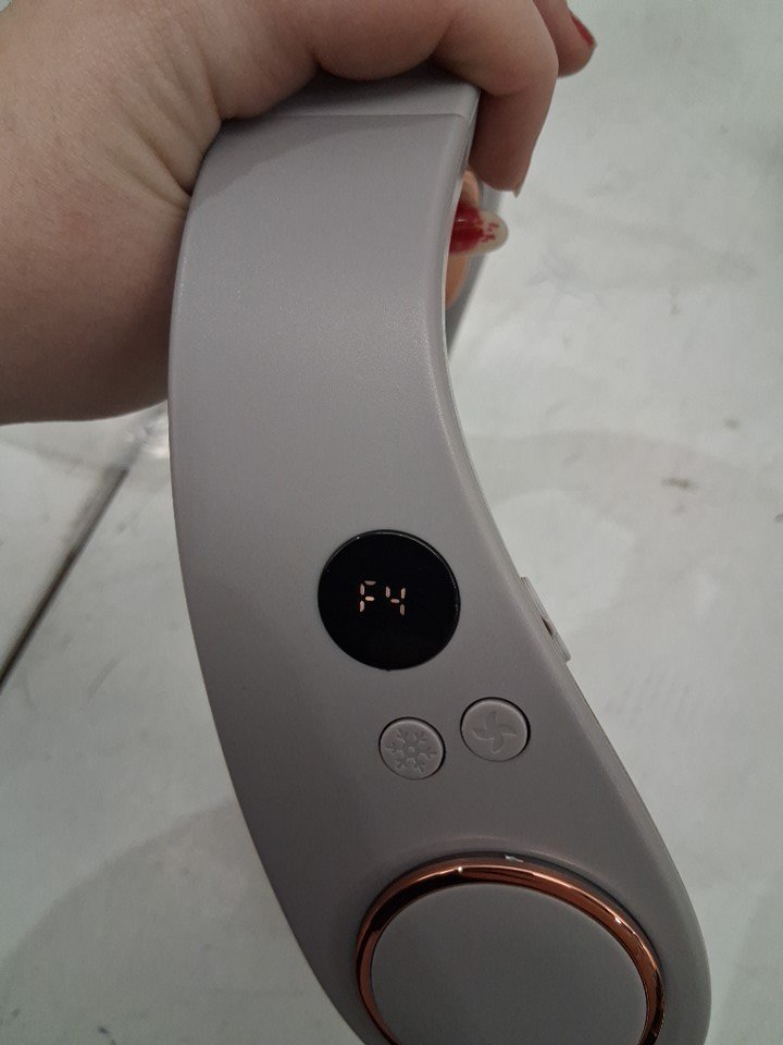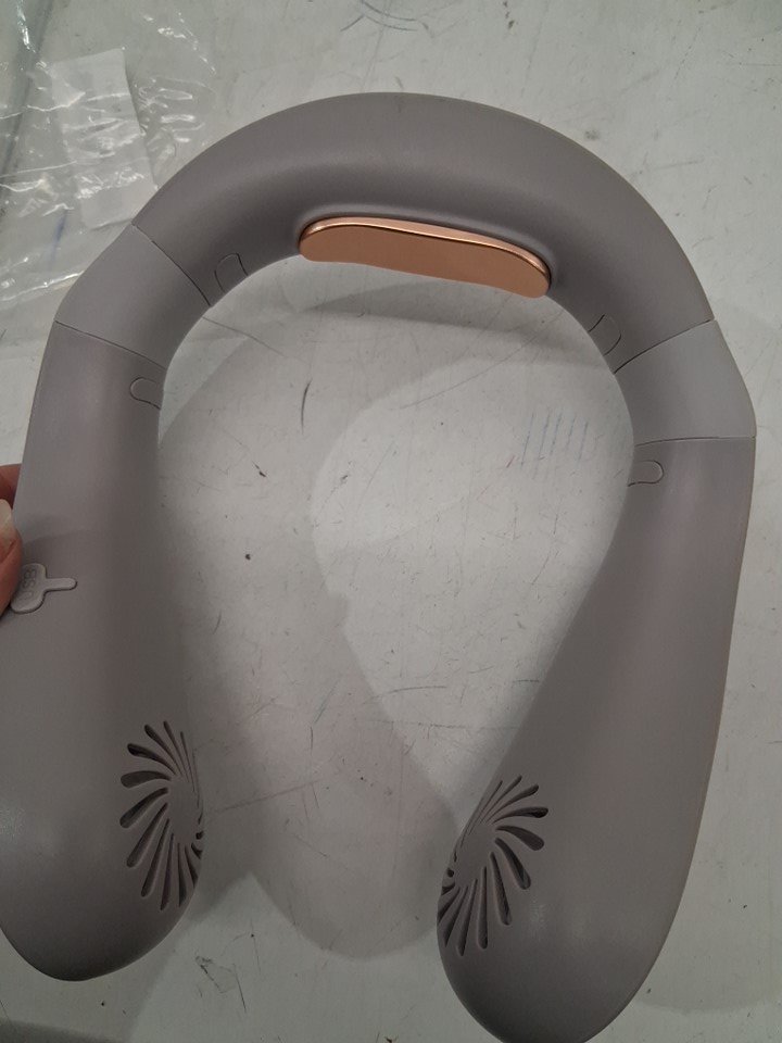 3-speed portable hands-free bladeless neck cooler fan with 360° cooling and rechargeable battery - 4000mah - white/gold (MODEL: s-20)