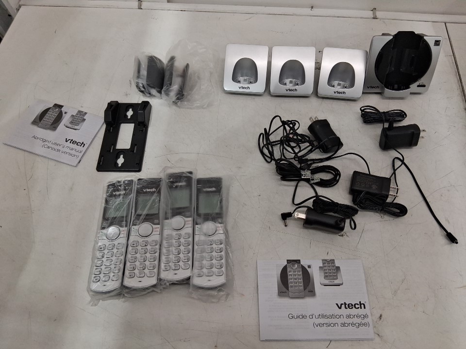4PK VTECH DECT 6.0 HANDSET CORDLESS PHONES WITH CALLER ID BACKLIT KEYPADS AND SCREENS CALL BLOCK AND SPEAKERPHONES - BLACK/SILVER (MODEL: CS6919-4)