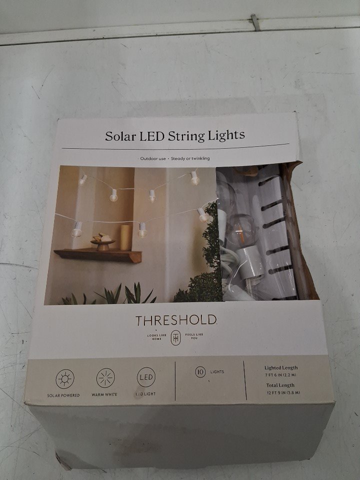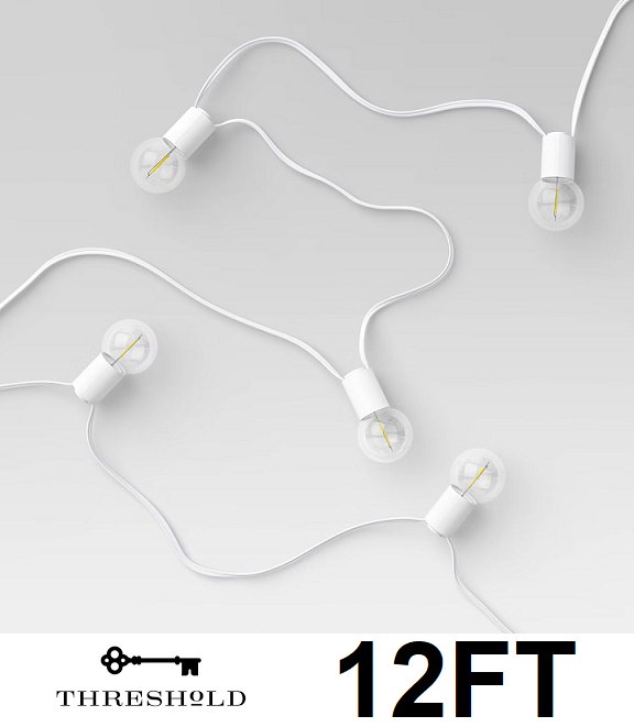 Threshold 10ct LED Solar Outdoor Orb and Globe String Lights Clear Bulbs - 12FT - WHITE