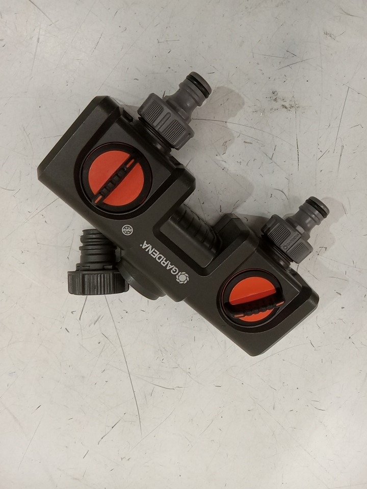 GARDENA DUAL GARDEN HOSE VALVE - BLACK/ORANGE (MODEL:38193)