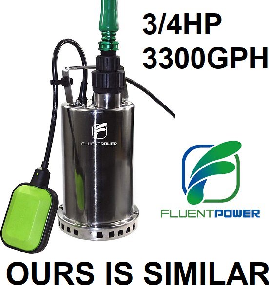 FLUENTPOWER 3/4HP 3600GPH Stainless Steel Submersible Pump (MODEL: FSP750C-NF)