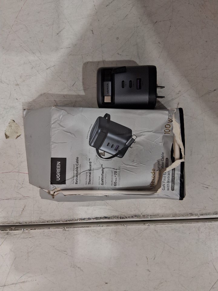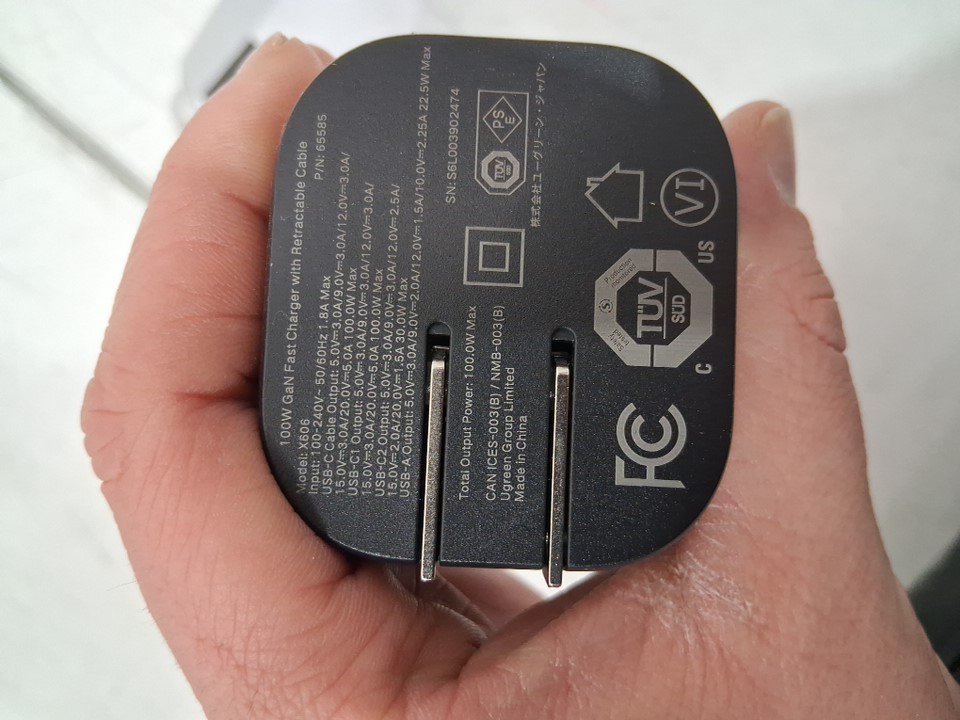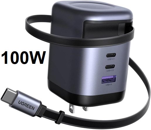 UGREEN Laptop Charger USB C Retractable Charger Block with Built-in Cable, GaN Fast Charging Wall Charger - 100W, - black - (model:x606)