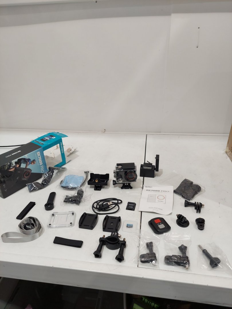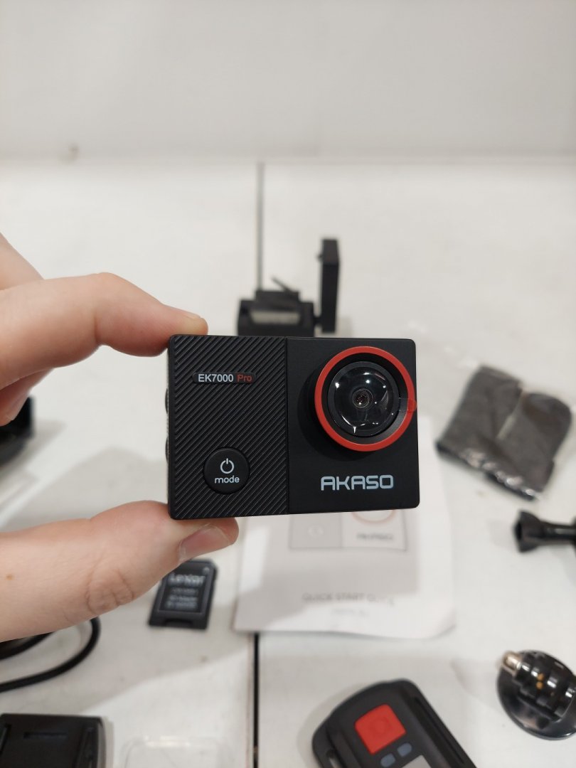 AKASO EK7000 Pro Action Camera with Helmet Accessories Kit - 4k hd, Touch Screen, EIS, 131ft Waterproof, Remote Control - black