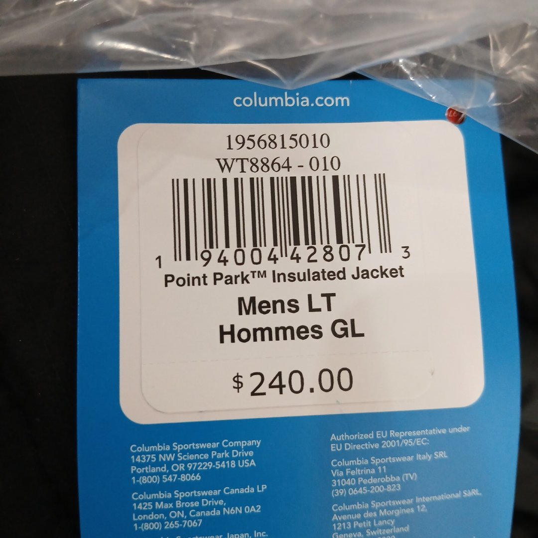 men's columbia point park insulated jacket - LARGE, TALL - black (MODEL: WT8864-010)