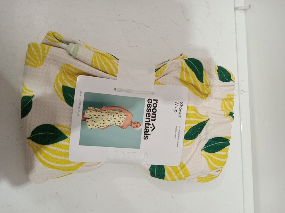 WOMEN'S Room essentials Cotton Terry Shower Wrap, with Hook and Loop Closure - LEMONS