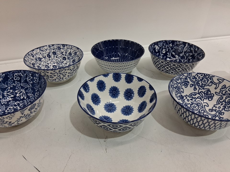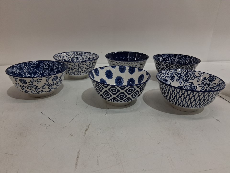 6pc cerkik ceramic dessert bowl set- 12oz microwave/dishwasher safe- vintage blue