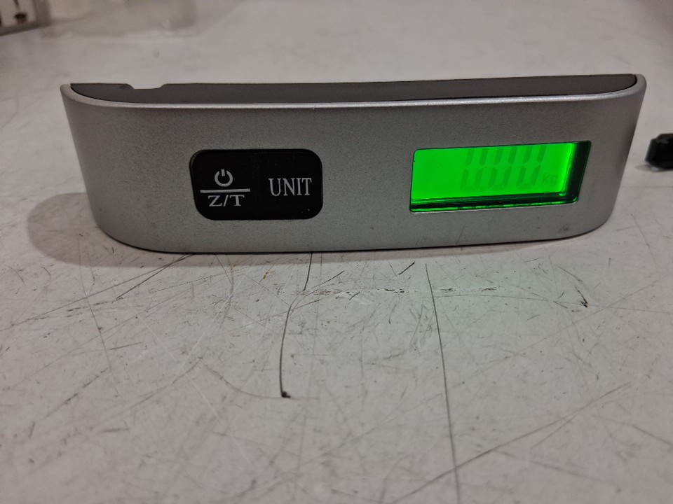 ETEKCITY DIGITAL HANGING LUGGAGE SCALE PORTABLE HANDHELD THERMOMETER SENSOR - 100LBS MAX -SILVER/BLACK (MODEL: EL11)