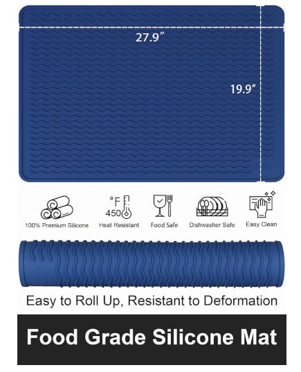 XIFEO Food Grade Heavy Duty Silicone Glass Stove Top Cover Protector - 28" X 20" - BLUE