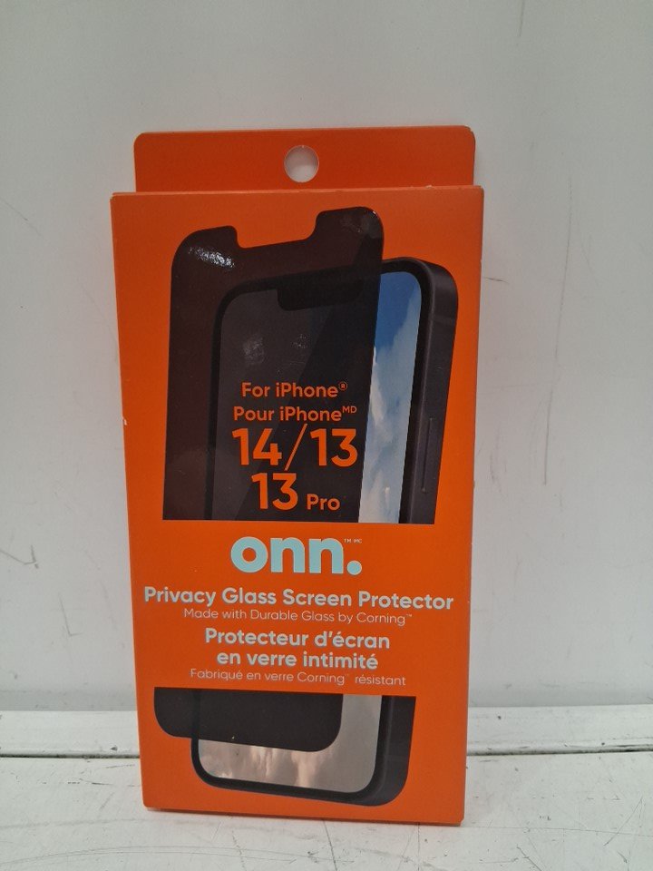 onn. corning privacy glass screen protector for iphone 14/13/13 pro - tinted/clear