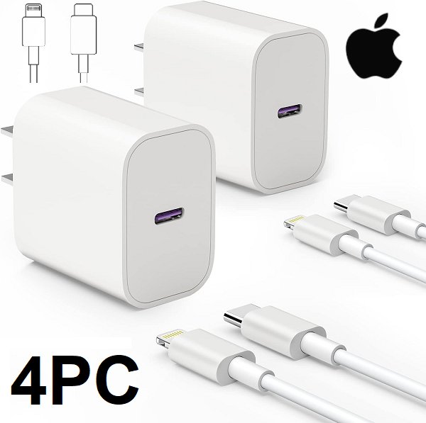 4PC GOURDE iPhone Fast Charger USB C Wall Charger Block with USB C to Lightning Cable - 10FT - WHITE