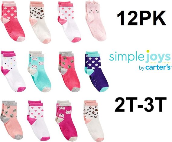 12pk girl's Simple Joys by Carter's Sock Crew- 2-3T - cats/assorted