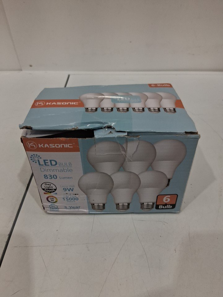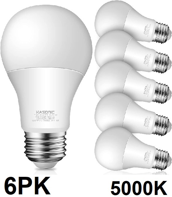 6PK Kasonic Dimmable A19 LED Light Bulbs - 9W 15000LM 5000K - Daylight