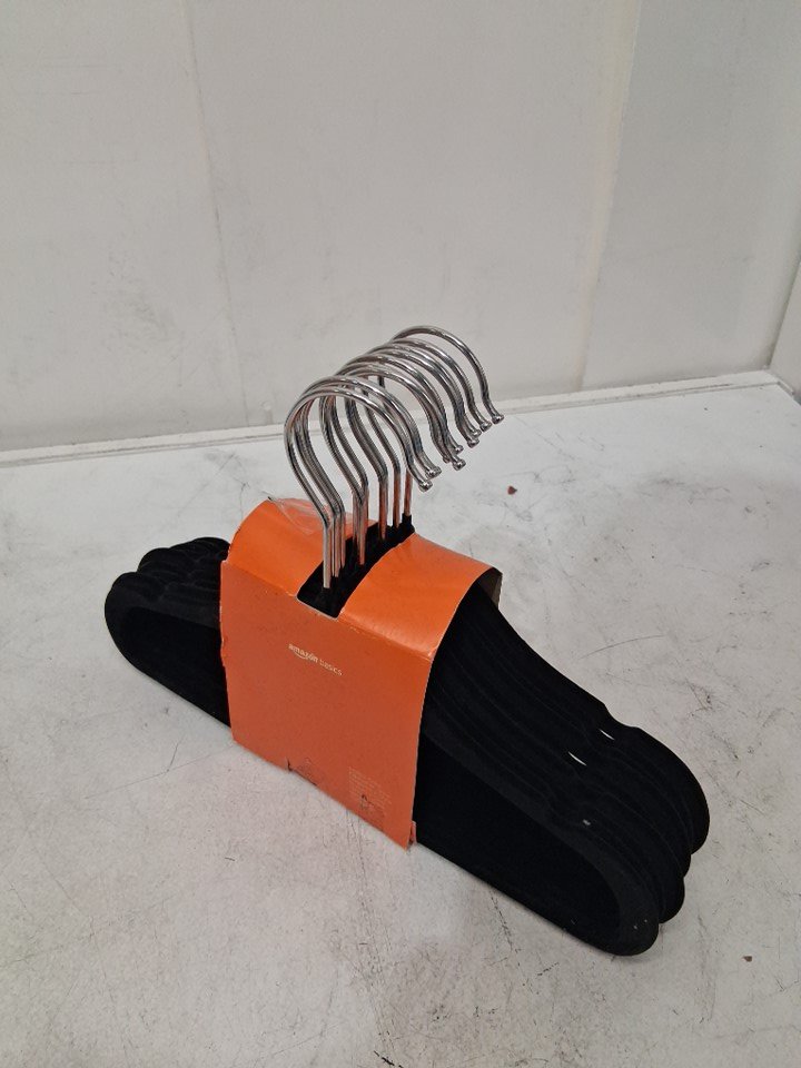 10PK AMAZON BASICS VELVET SKIRT HANGERS - 11.5" x 8" - BLACK