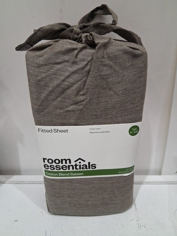 Room Essentials Easy Care Cotton Blend Sateen FITTED Sheet - TWIN / TWIN XL - GREY