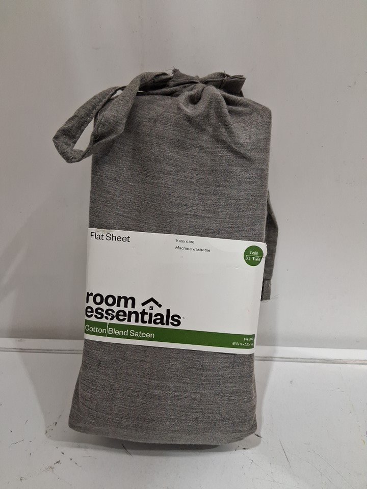 Room Essentials Easy Care Cotton Blend Sateen FLAT Sheet - TWIN / TWIN XL - GREY