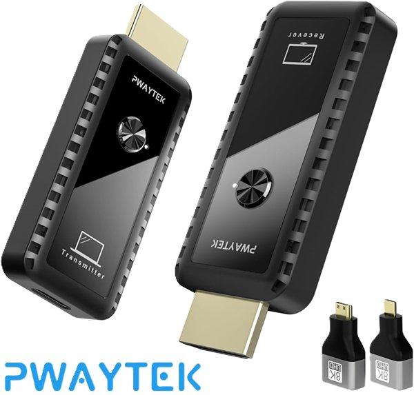 PWAYTEK Wireless HDMI Transmitter and Receiver with Adapter 4K - for Streaming Video and Audio to Monitor from Laptop/Tv Box/PC - BLACK (MODEL: DT269W-H