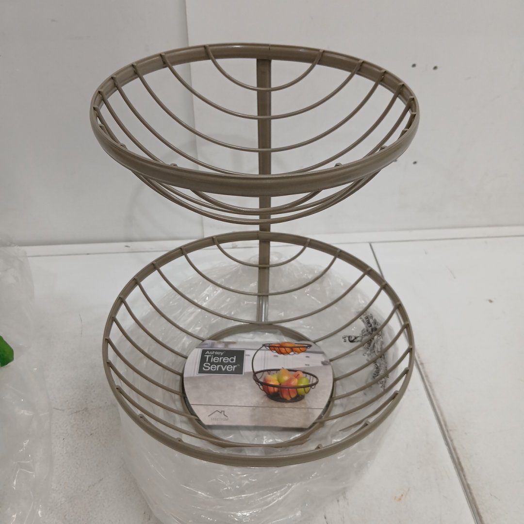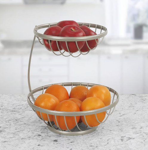 SPECTRUM ASHLEY 2-TIERED SERVER, COUNTERTOP FRUIT BASKET - SILVER (MODEL: 28077)
