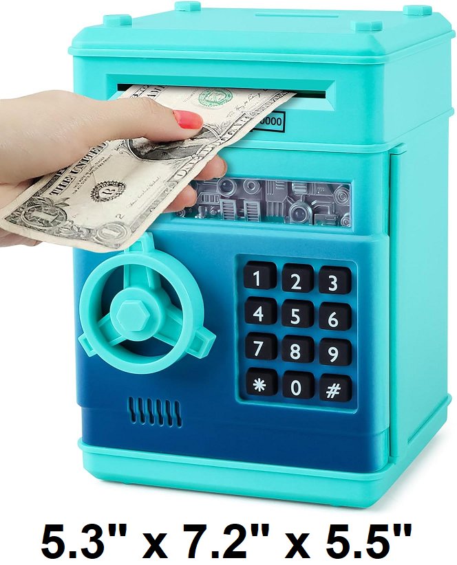 Refasy electronic piggy bank safe with passcode - 5.3" x 7.2" x 5.5" - blue