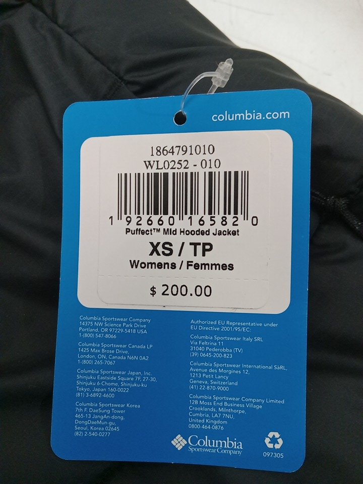 WOMEN'S COLUMBIA PUFFECT MID HOODED PUFFER JACKET - EXTRA SMALL - BLACK