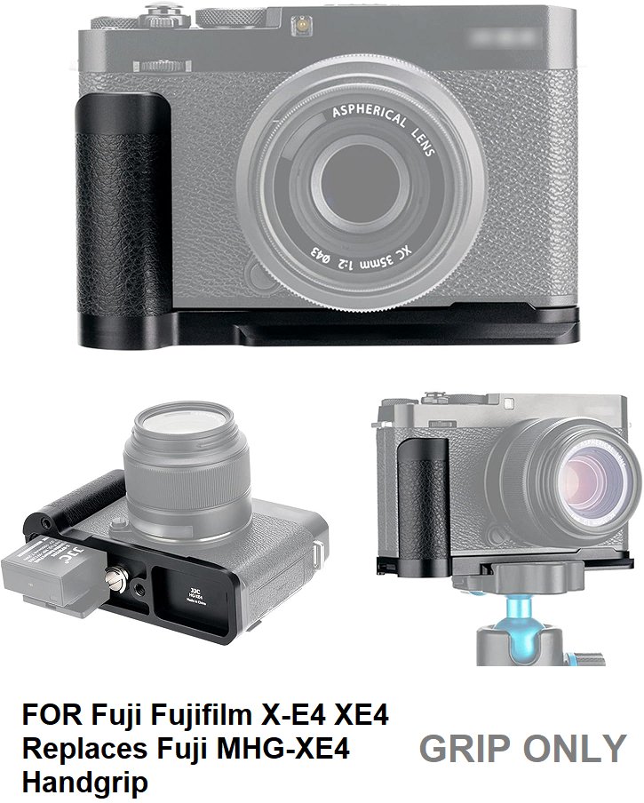 JJC Solid Metal Hand Grip Secure Quick Release Plate L Bracket Holder - for Fuji Fujifilm X-E4 XE4 Replaces Fuji MHG-XE4 Handgrip - black
