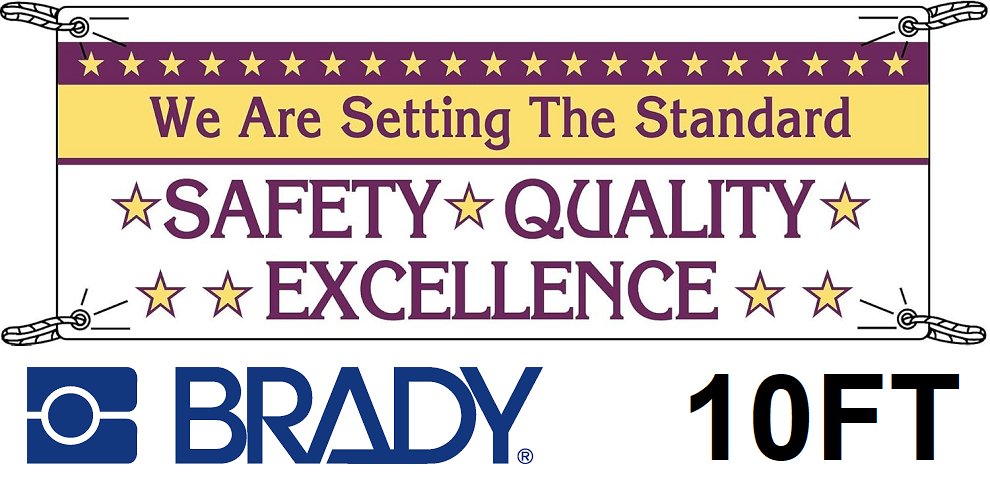Brady 106307 Safety Banner, Vinyl - 10FT - Safety, Quality, Excellence - White