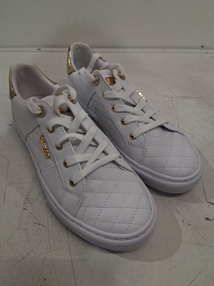 WOMEN'S GUESS LOVEN lace-up SNEAKERS - SIZE 10 - white/gold - (style: gwloven)