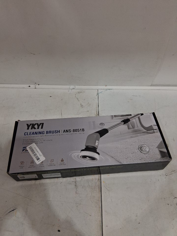 ykyi cordless electric spin scrubber brush with brush head attachments - 12" - 43.3" - grey (model: ans-8051b)