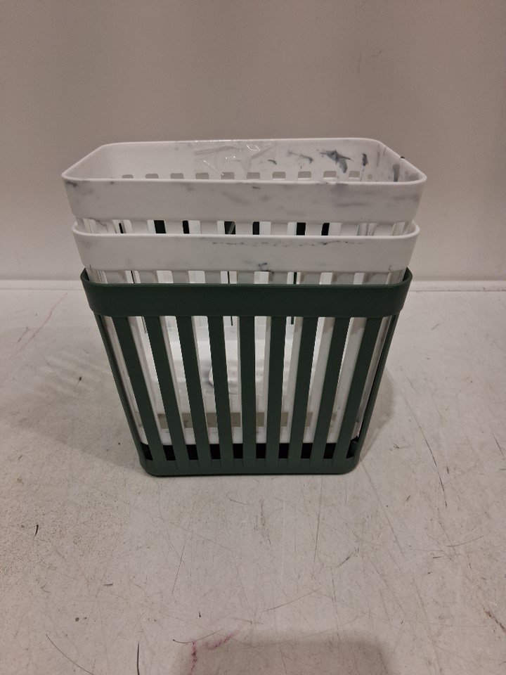 3 Bullseye's Playground storage baskets - 5" x 6" - WHITE /GREEN