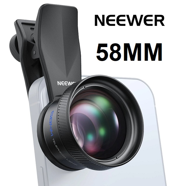 Neewer LS-71 58mm Telephoto Phone Camera Lens - 17mm Threaded Clip - Black