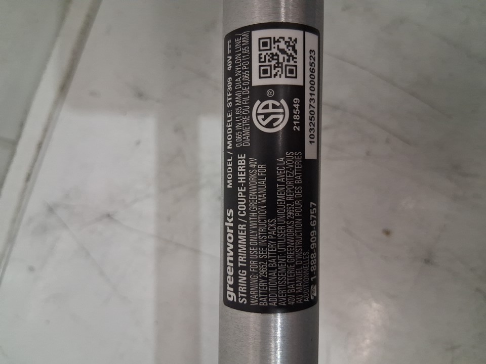 Greenworks 40v Cordless String Trimmer with battery & charger- 12"- green/black (Model: stf309)