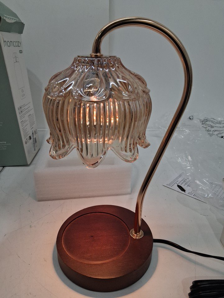 geezo fragrance candle warmer lamp with 2 bulbs - retro wood base