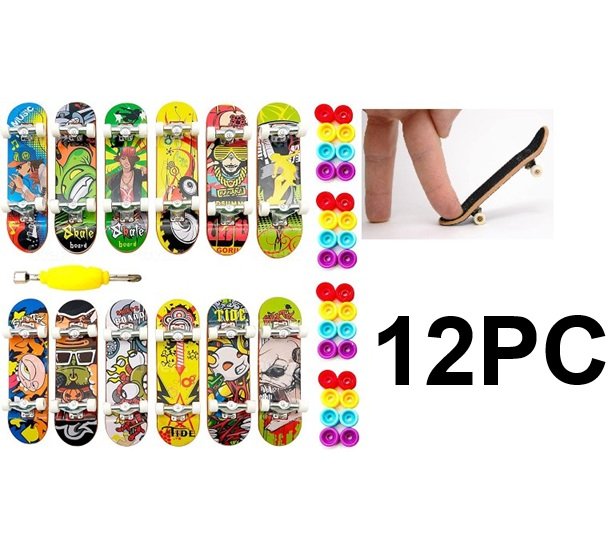 12PC KIDS STASHABLES TOY FINGER SKATEBOARD - MULTICOLORED - (MODEL:Stash-A16)