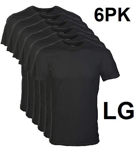 6PK MEN'S GILDAN CREW NECK T-SHIRT - Large - BLACK