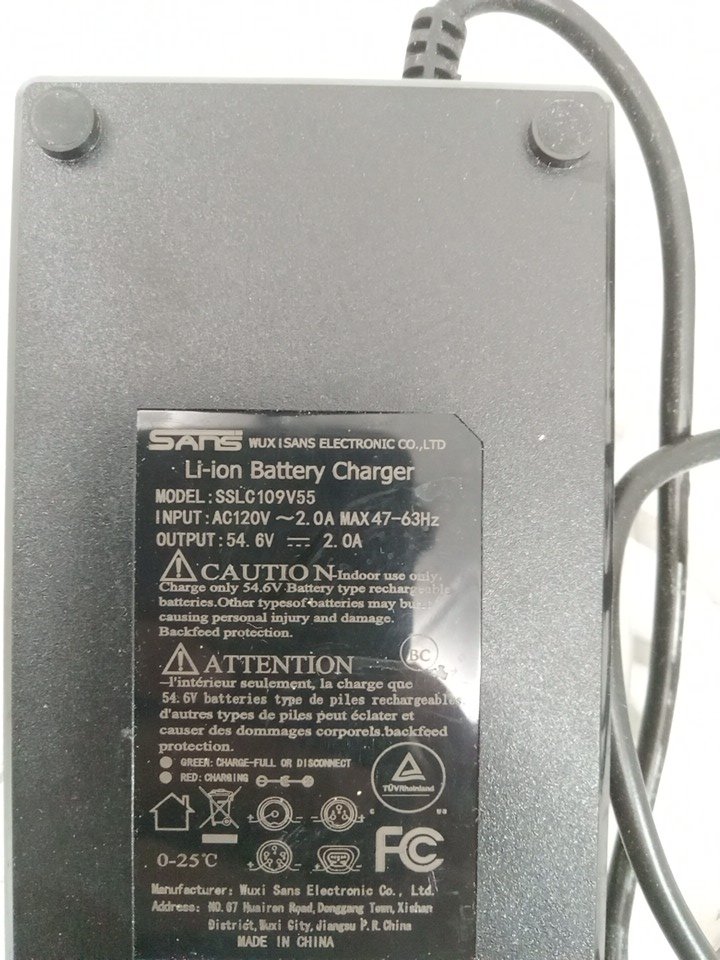 SANS LI-ION BATTERY CHARGER, AC120V, 2.0A MAX 47-63Hz, OUTPUT: 54.6V, (MODEL: SSLC109V55).