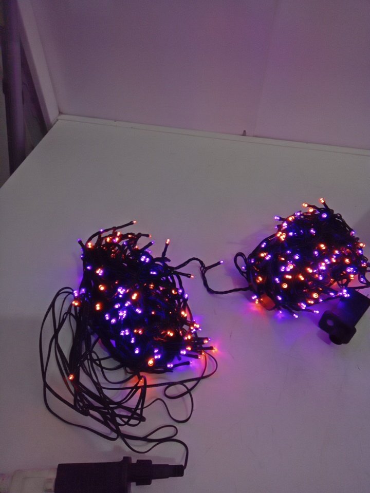 mzd8391 motion sensor spooky halloween music waterproof indoor/outdoor string lights - 108ft - 300led - orange/purple