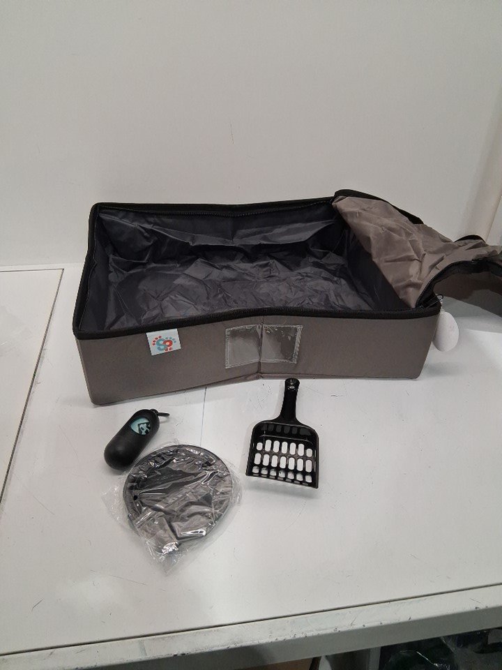 SportPet designs foldable travel litter box with accessories - 19.7" x 15.8" x 5.3" - Brown/black