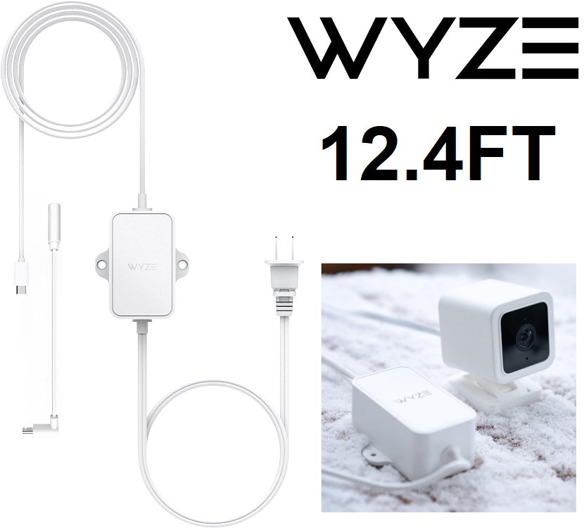 wyze outdoor power adapter v2 cable for wyze cameras - 12.4ft - white - (model: wyzecv3oa / wyzecp3oa)