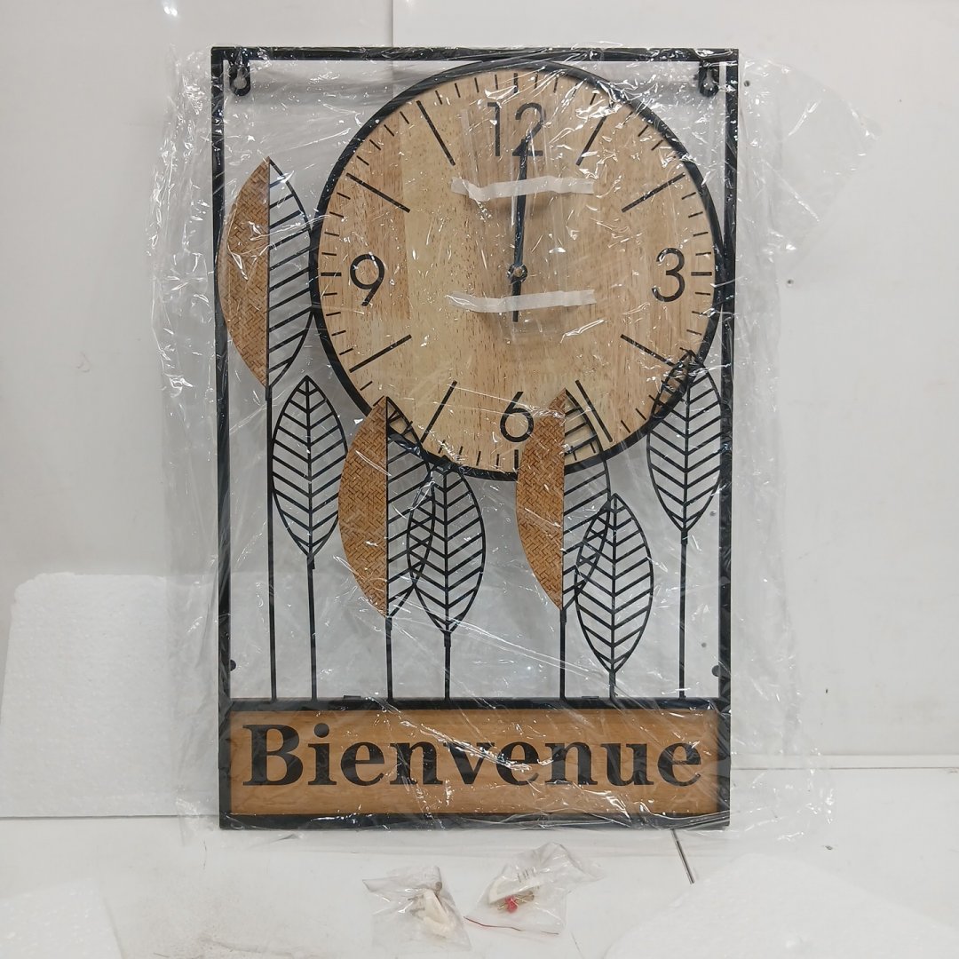 DECORATIVE WALL MOUNT RECTANGULAR CLOCK WITH LEAF ACCENT METAL - 23.5" - BLACK (MODEL: WCDECOR-BLACK)