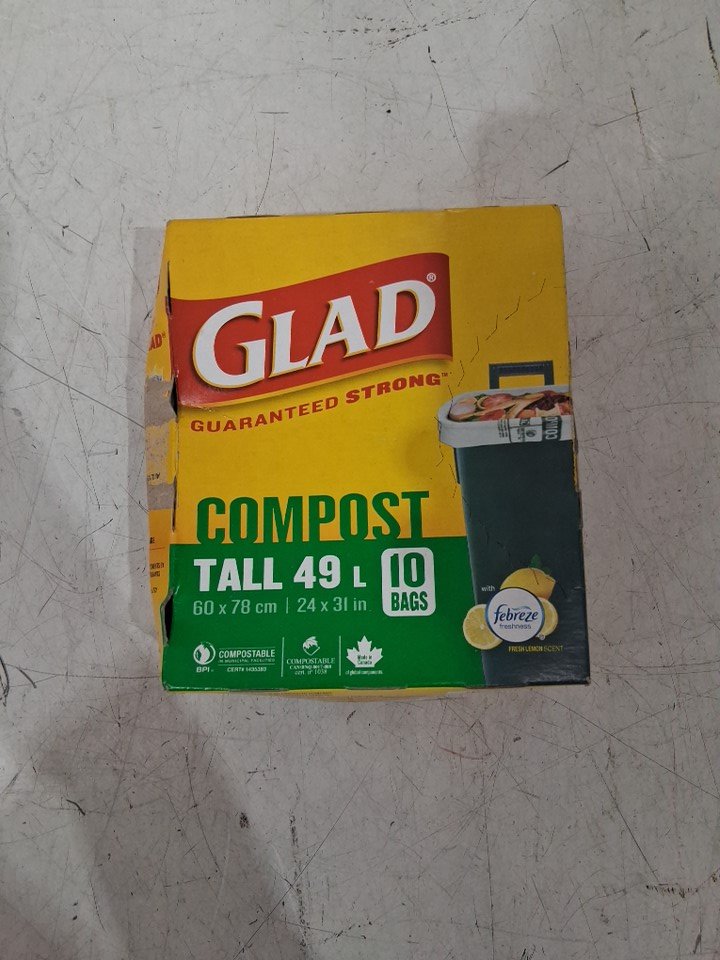 10PK GLAD 100% COMPOSTABLE BAGS, TALL 49L - LEMON SCENT